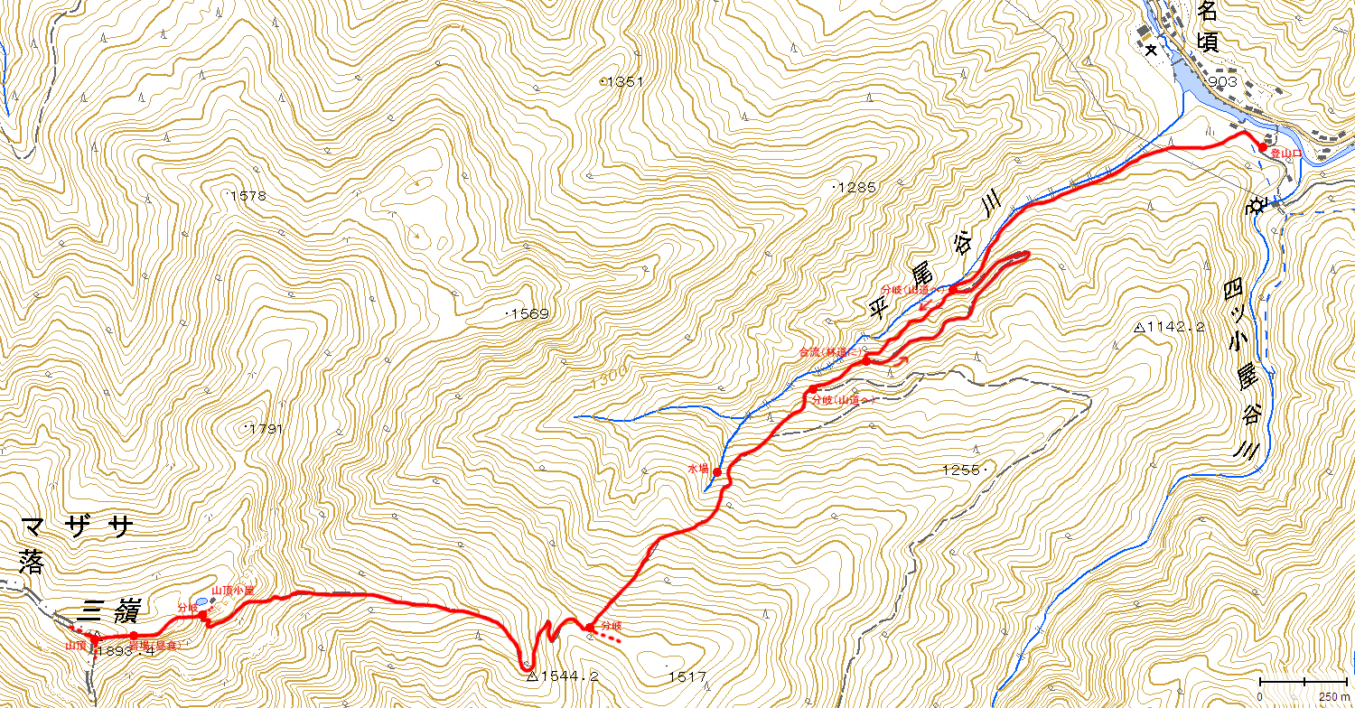 見ノ越(剣山登山口)から15分で奥祖谷かずら橋、そこから5分で名頃(三嶺登山口)です。