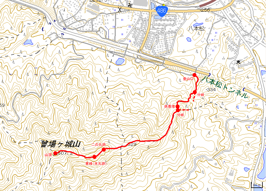 前回(2006.6.28)は八本松小学校横から登りましたが、今回は幾分短縮して5号横断橋登山口から登りました。