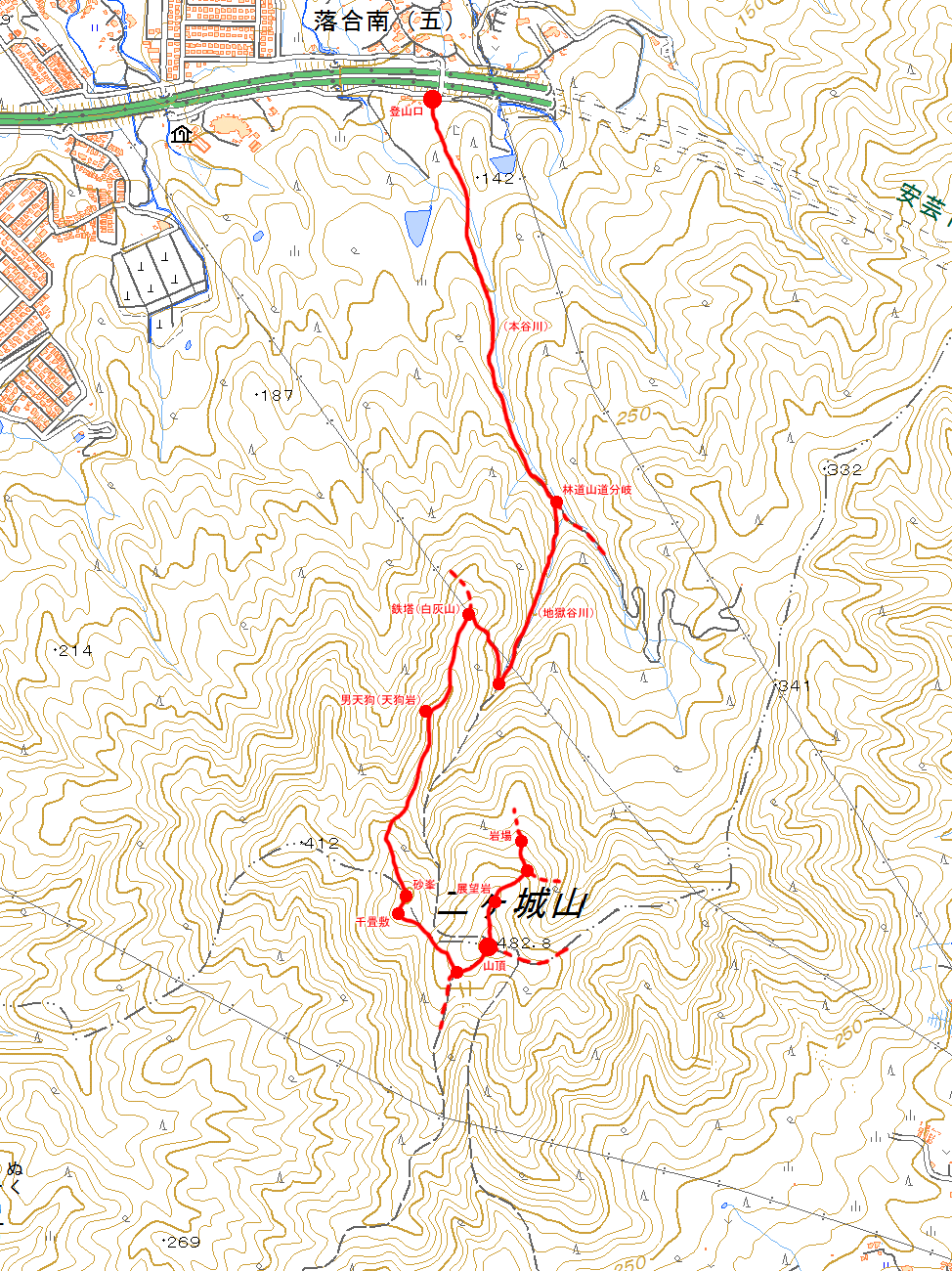 なので、隣の尾根との間の谷筋が良く見える位置まで移動します。