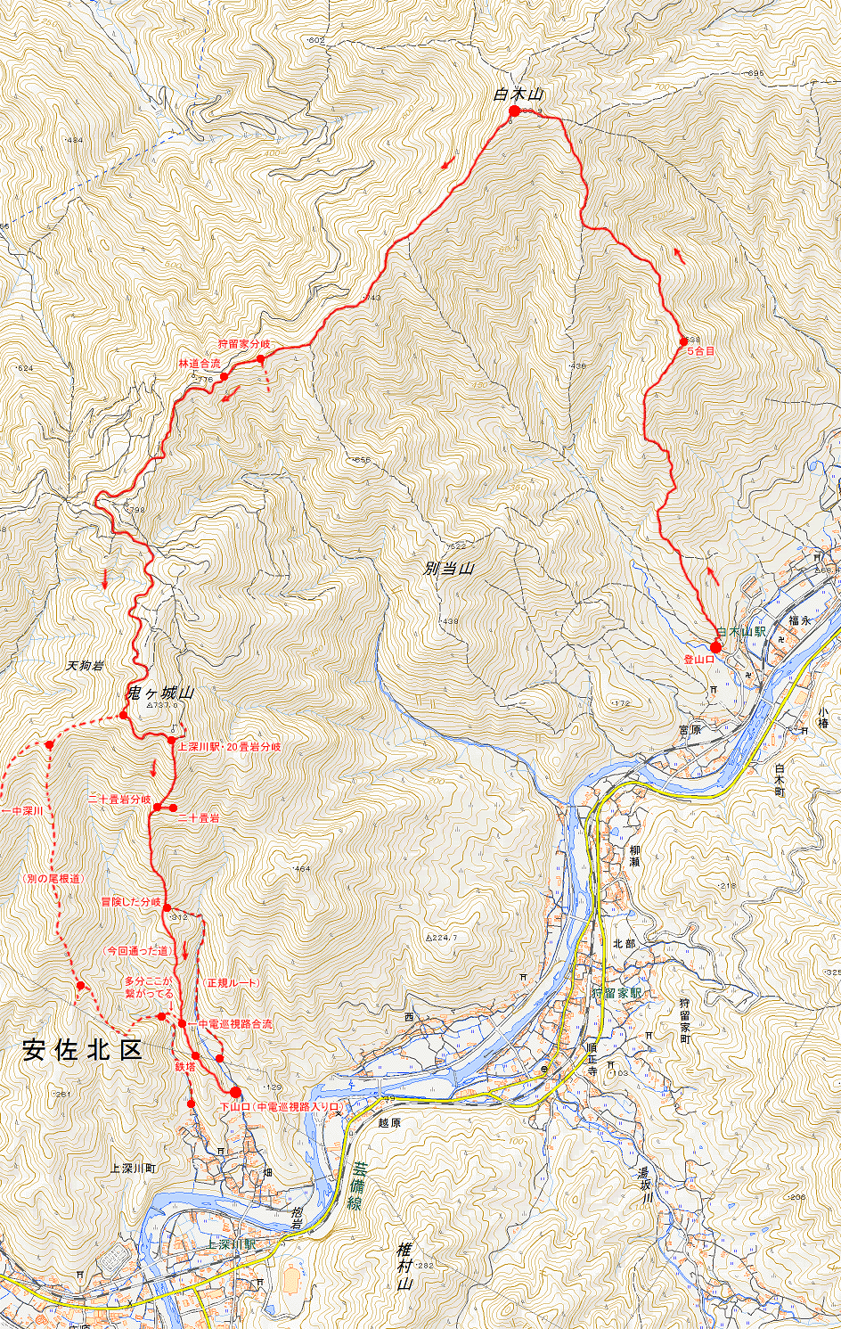 「白木山。9時、狩留家駅集合。」だけメールをして、「あわよくば鬼ヶ城まで縦走」と思ってた。