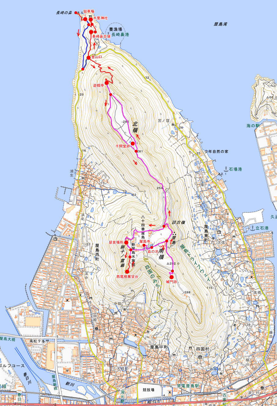 登山以外に、長崎の鼻、風呂、屋島展望地(全景撮影)、高松城跡に寄りたかったので...