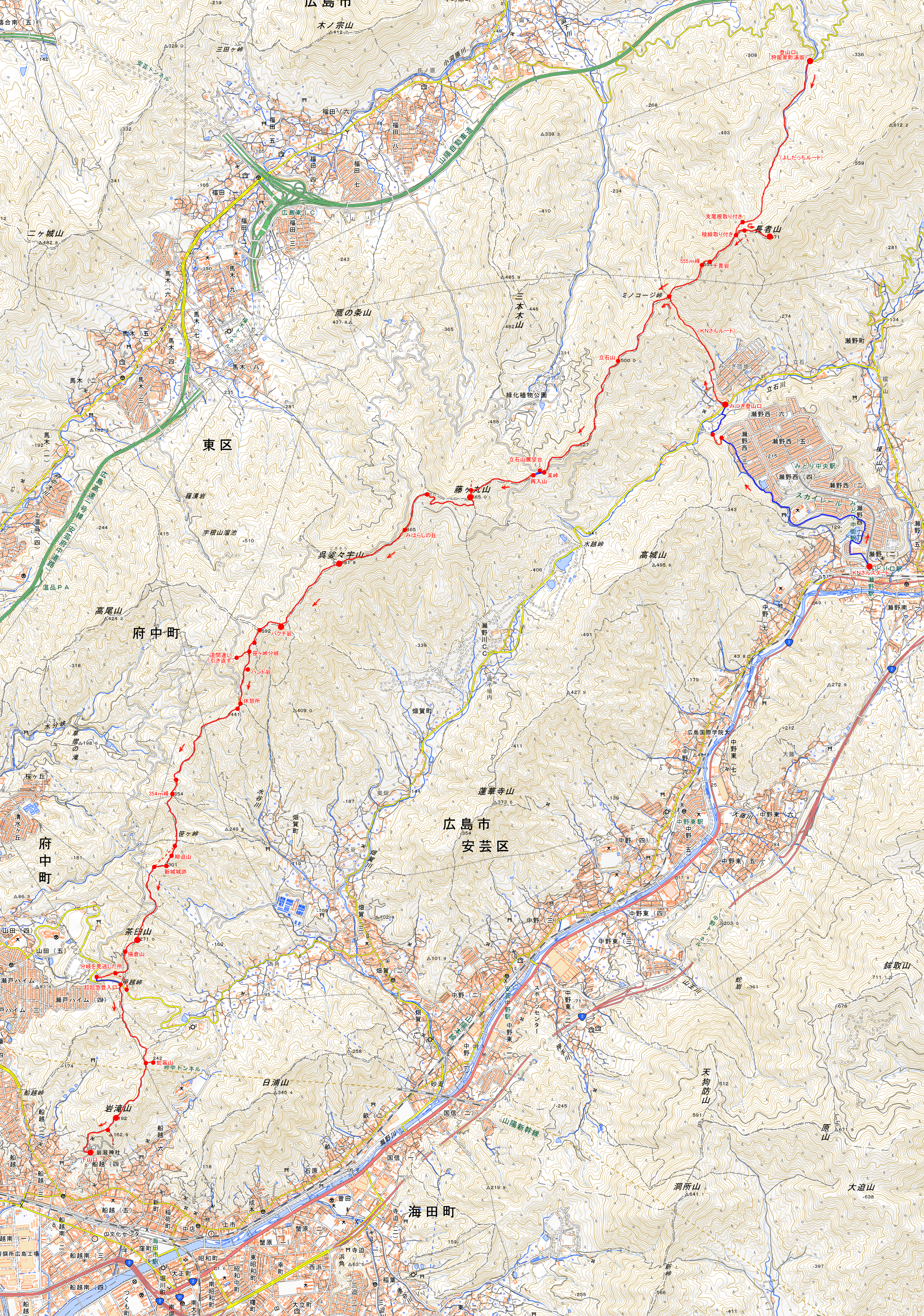 と言いたい所だが、海田市駅まで、後1.3km、比高-50m程歩く。(^^;)