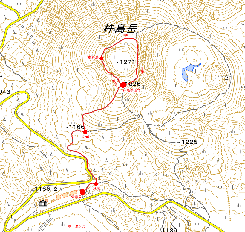 移動途中、カルデラ内に入る前、コンビニ(標高170m辺り)に寄った。