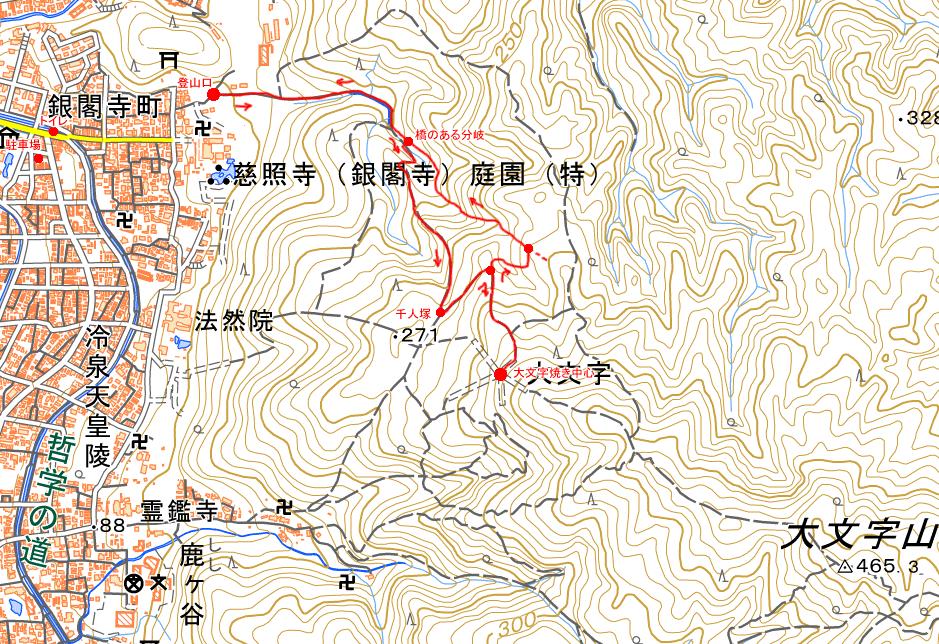 水路閣横から大文字山を目指すコースもあるが、本日は軽登山、銀閣寺横からピストンする。