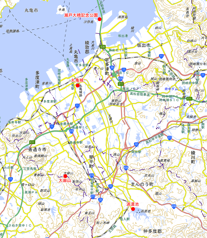 瀬戸大橋記念公園に行って時間を潰し、丸亀城から夕景、夜景を見て、帰途に就く予定だ。