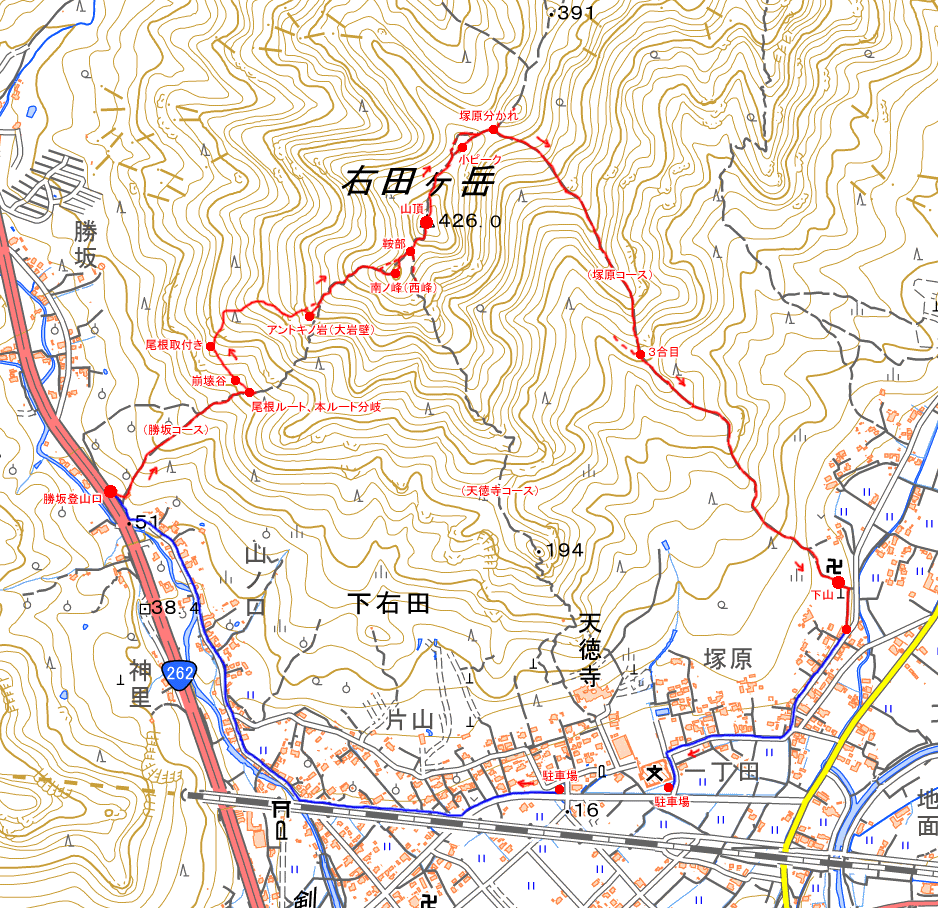 毎度の勝坂コース、尾根ルートで登り、天徳寺コースで下山の予定だったが、