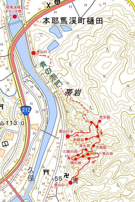 (川向うに渡って、回り込んで北側からアプローチすれば、登山口Aからも入れたかも???)