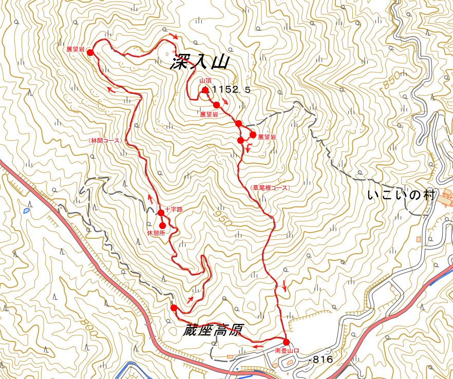 南登山口への分岐を一旦見送って、