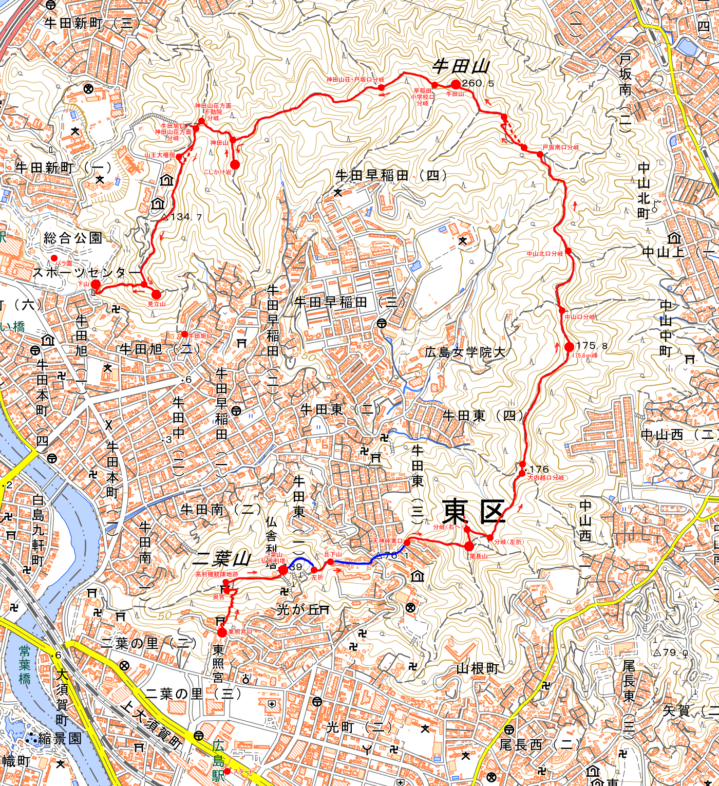 私はアストラム二駅分を歩いてJR新白島駅へ...