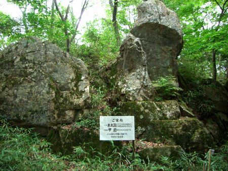 ![]() | 本丸跡にある甲岩。 岩を利用した土塁になっています。 櫓台でもあったのでしょうか? |