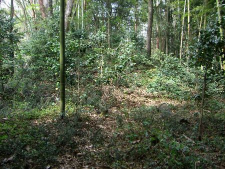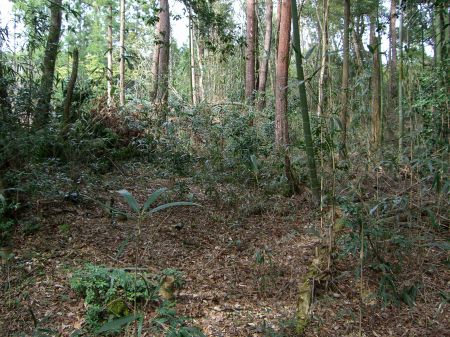 ![]() | 本丸を南から東に取り巻く帯郭の南側部分。 左の隆起は本丸。 |