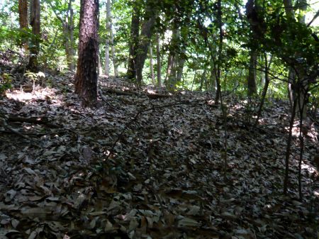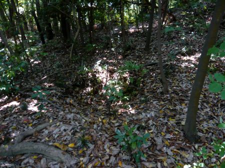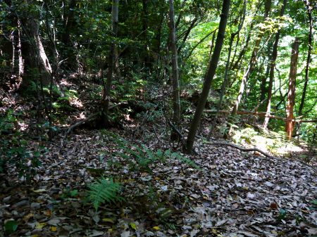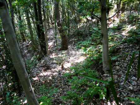 一旦1つ北の支尾根を伝って東の麓に下りて、城跡のある支尾根を登り直した。