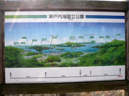 ![]() | 登山口の案内板。 「因島八景」とある。 |