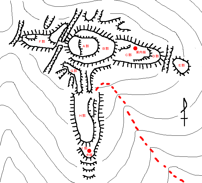 登山口から主郭まで比高100mくらいですが、何の資料も無く(ゴールも分からず)、雨でぬかるんだ道を登り、