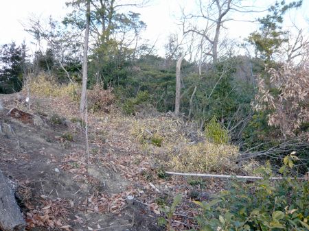 ![]() | B郭北端にある堀切です。 中央が土橋状になっていますが、 当時は溝だったのではないでしょうか。 左からは登って来た道になっています。 |