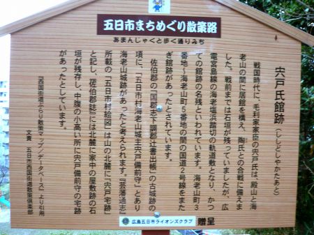 ![]() | 海老山北端にある「宍戸氏館跡」の説明板。 |