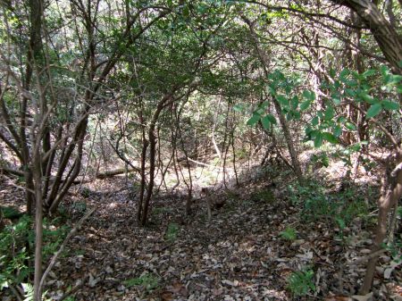 ![]() | 主郭南端。 この岩場は虎口の役割でしょうか? |