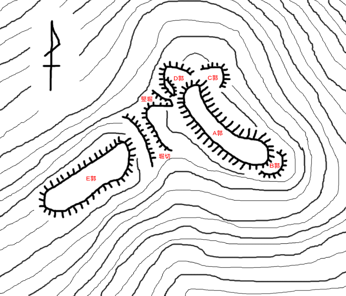![]() | E郭。 主郭手前の広い郭跡。 |
