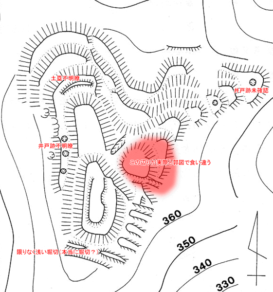 この削平地は藪だらけで、正面が削り取られ絶壁に。(土砂採取場?)