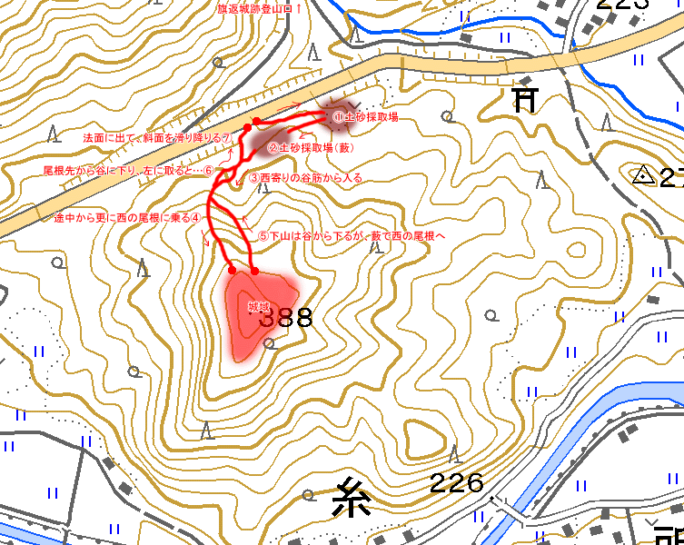 場所は、旗返山城跡(2008.3.29)を参照。旗返山城跡から国道375号線を挟んで対岸(南側)に位置する。